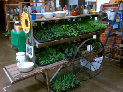 We grow and produce everything we sell. A background of 6 generations of famers, and 4 generations of potters make way for the upcoming 7-8 generations. Hard work, and study are important to farming. Besides plants and produce, we hope to give you expertise on how to grow, harvest and prepare using the finest chemical free ingredients! We are also environmentally friendly, using 95% recycled plastic. You are welcome to bring us your plastic pots, trays, and grocery bags. You'll find a wide variety of herb, vegetable and heirloom tomato plants, in addition to eggs, and new and different varieties of veggies. Pottery items and recyled market bags are also available throughout the year.